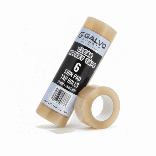Secure your gear with confidence using Galvo Sports high-performance clear hockey tape. This 6-pack of 25mm x 25m rolls is specifically engineered to hold shin guards and equipment firmly in place without compromising movement or visibility.