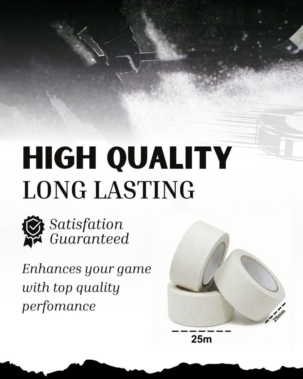 Each roll measures 25mm x 25 meters, providing long-lasting usability. The white fabric finish delivers a clean and classic look. It adheres firmly over socks and sports gear. The reinforced cloth structure reduces tearing during play. The material adds extra strength and reliability. It is ideal for consistent sports performance.