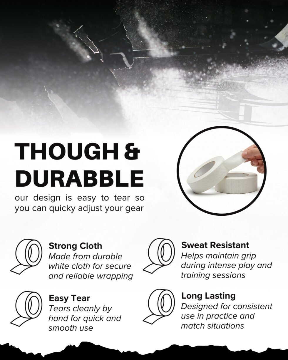 | 6 White Cloth Tape Rolls: | Value pack designed for regular practices and game days, so you always have extra tape ready when you need it. |